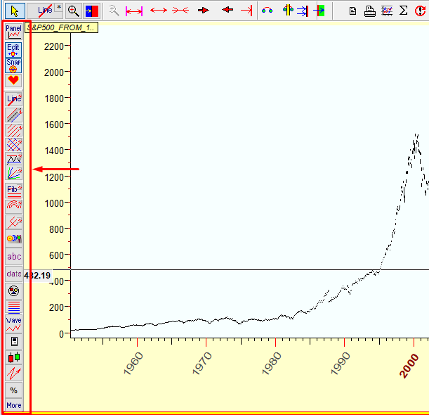 All buttons related to the charting tools are located on the left side of the Main window. First three buttons work with already created charting tool. Then a set of buttons follows, each one is dedicated to a specific charting tool.