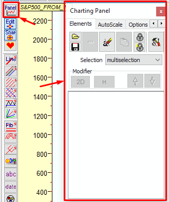 All the chart tool manipulations listed above can be done through "Charting panel" window: