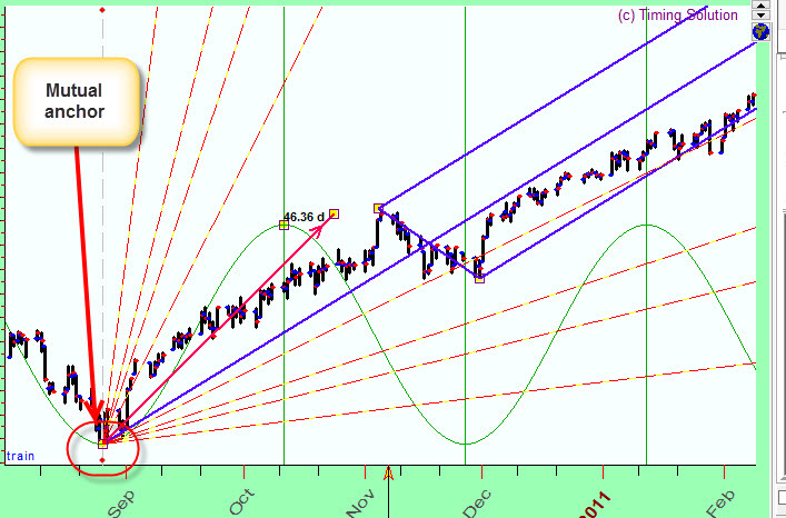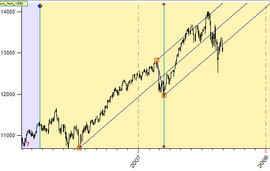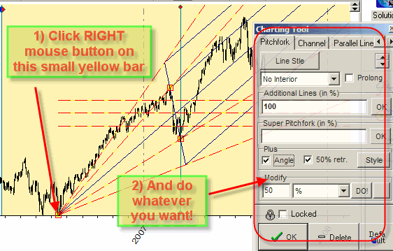 Changing the anchor's position is only one of the possible modifications. Practically all charting tools in Timing Solution have many variations. As an example, have a look at the classical Andrews pitchfork: