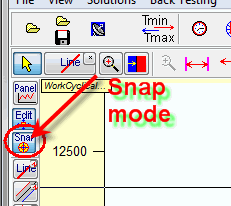 The third button, "Snap", is very useful when it is not easy to define a proper price point for the anchor. The program itself sets the anchors on the nearest highest high or lowest low ('nearest" to the position of the mouse cursor on the screen). It is also activated by default: