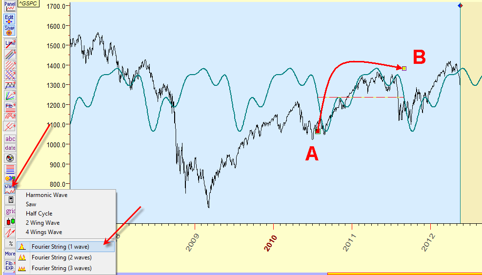 There you will find more advanced cyclical charting tools. One of them is Fourier String charting tool. It conducts Fourier analysis fantastically fast while you move the cursor over the screen: