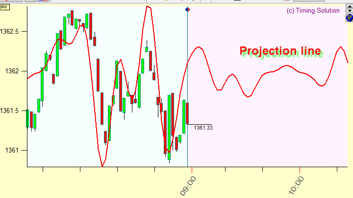 In wavelet module you can see the birth of new cycles. You can see them on the wavelet diagram as bright regions. So, dragging the mouse cursor over this region you immediately get the projection line for this cycle together with the price chart, like this: