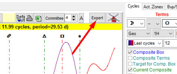 After downloading the price history, run Composite module ("Astronomy" button). Click there Expert button (this feature is available in Terra version only):