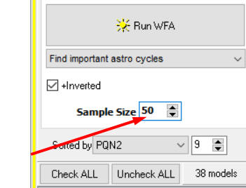 The first scenario looks for permanent astro cycles that work for your financial instrument. It analyses Annual, planetary phases, Moon based cycles etc. For permanent cycles we recommend to increase the sample size; set it to 50: