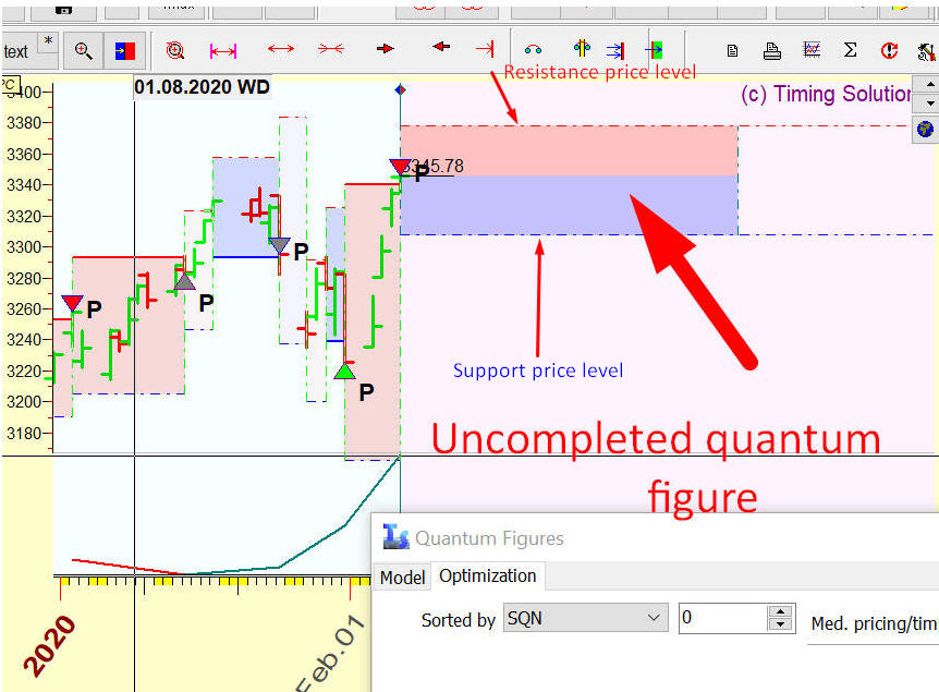 How to use this module for trading? The program optimizes parameters of quantum figures, finds the most profitable quantum figures and shows the uncompleted quantum figure based on the latest price history (its parameters can be used as support/resistance lines):