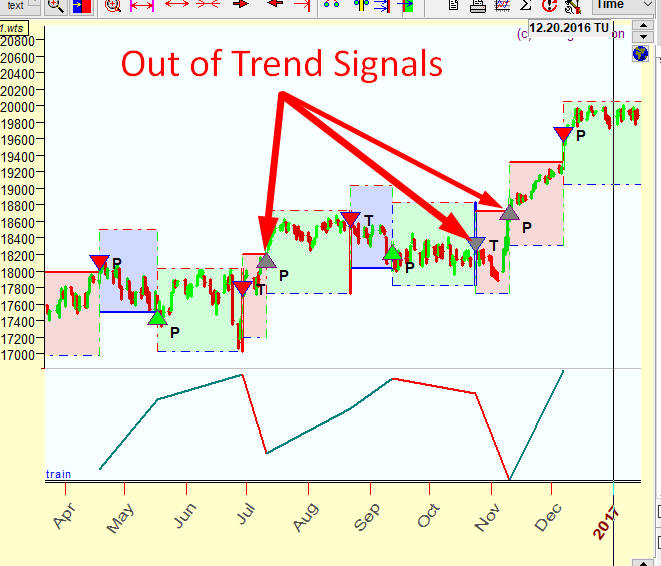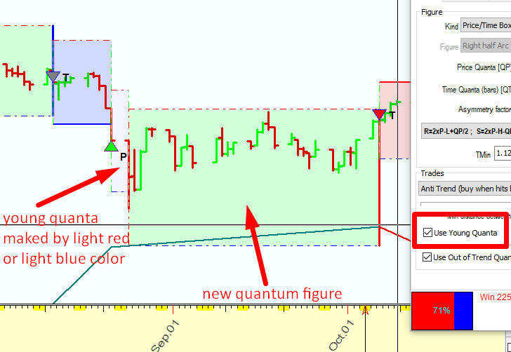 We call these quantum figures Out of Trend Quanta (OTQ). The trading signals generated by OTQ are marked by grey color: