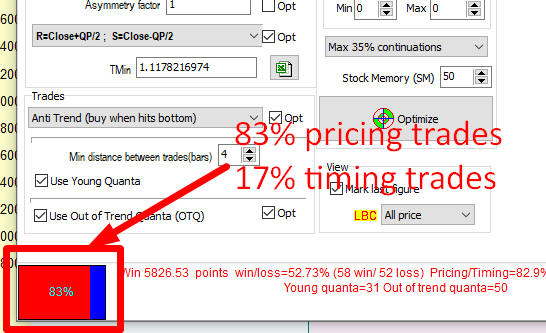 It helps you easily see where pricing or timing works. Also for your convenience, there is a bar that shows the balance between trade signals derived from pricing and timing: