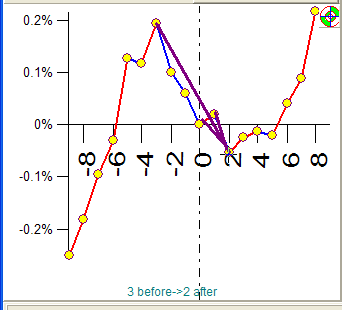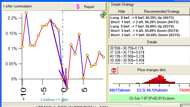 I did the following examples for Dow Jones Industrial Index data. My purpose was to show you how this research can be done and what things are worth to consider. Though I did the comparison of declinations of several planets, I provide here the example of the research for one planet declination only. I do it using two different techniques. Two other examples show the research of compounded models. You can try to do the same research yourself (or explore any other financial instrument). For me, it is easier to make examples as the answers to some questions.
