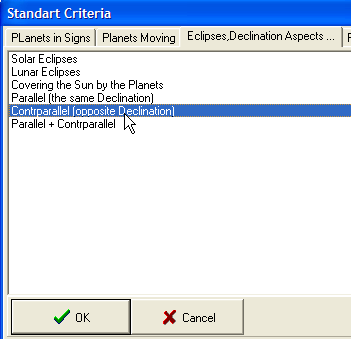 Again, my intention here was only to show how to do the research on declinations with this software. I believe that now you can easily analyze any planetary combination and different phenomena that involve a declination.