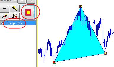 10. In order to make the triangle an equilateral triangle, select the triangle in the list of draw objects and then select the "squaring" icon (as was shown above for the line tool) eg