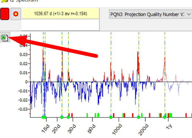 Now it will be explained how these calculations have been performed. In Timing Solution you can calculate and extract the most important cycles using Q-Spectrum or Classical spectrum modules. For example I have used Microsoft (MSFT) and Apple (AAPL). In order to do that I have calculated Q-Spectrum, have extracted the most important cycles and saved this info into Excel file using the button below: