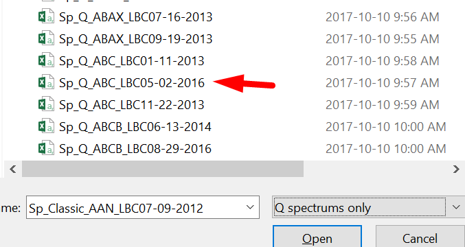 Ok, let's calculate high probability spectrum for cycles calculated with Q-Spectrum module. After clicking "Open" button, choose Random_LBC_2012_2017 folder and highlight the item Q spectrums only: