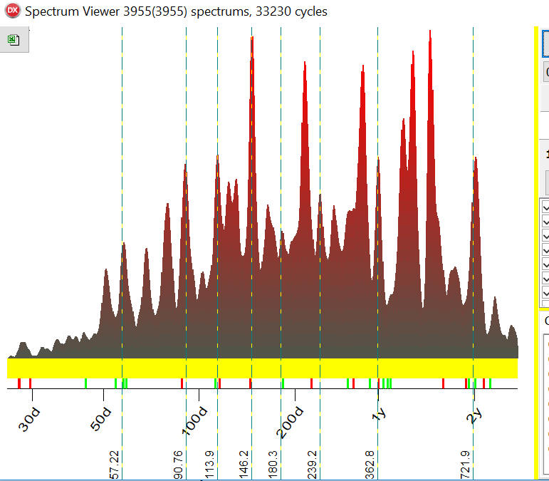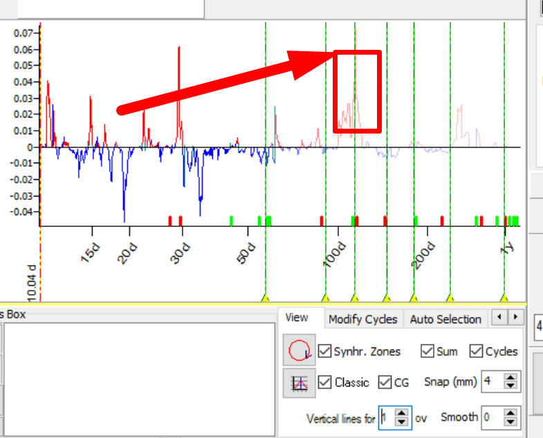 How can these cycles can be used in practice? Timing Solution users can display these high probability cycles (cyclical genome) setting ON "CG" option in Q-Spectrum module: