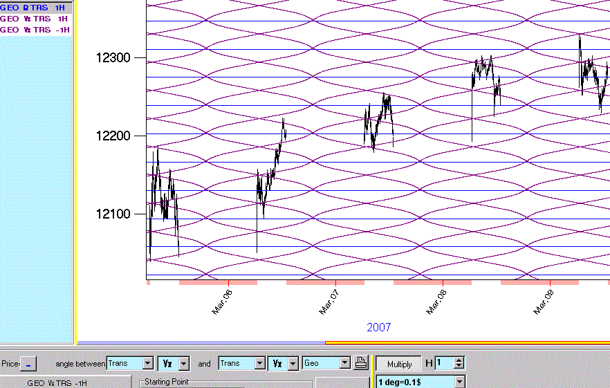 There appear to be two Planetary Lines (PL's) that have worked on the DJ Index for years - the North Node and the Vertex. By "work" I'm referring to having acted as support or resistance levels. Now that TS is real-time enabled its possible to use these PL's in a practical manner. Below is a 3-minute chart of the DJ Index for the past week (March 5 - 9, 2007). This was a particularly wild week coming right after a very large market fall the preceding week. For most traders this was a difficult trading week because of the many wild swings. For an overall perspective just do a quick review of the DJ Index below and see how often large swings ended right on one of these two PL's. I plot both the positive and mirror for the Vertex, just the positive for the North Node (blue). In this article we'll review a simple but potent trading method. The DJ index is updated every three seconds by the NYSE. Most of us would trade the DJ Mini (symbol YM) while doing our analysis on the DJ Index. Its because the index is updated every three seconds that this is practically possible.