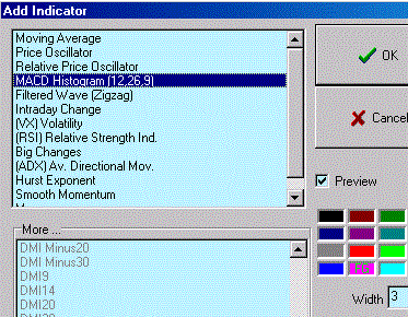 After plotting the three PL lines, send them to Strategy so they are visible on TS's main screen. Next, add the MACD Histogram indicator. We'll be using it to spot momentum divergence at Planetary Lines. While we're reviewing the week, keep in mind the index scale (the Y axis).