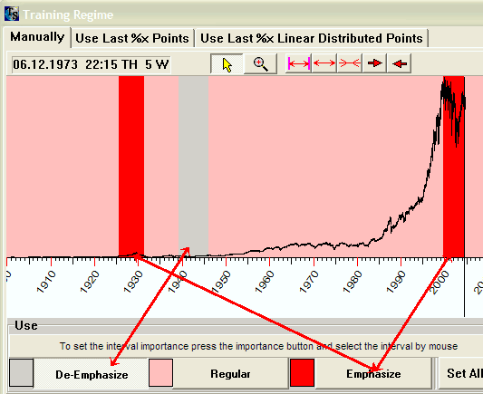 Looking at the past history, we inform the Neural Net in regards to some historical analogies. Thus, in the process of training the Neural Net, these selected intervals are emphasized, and the Neural Net works more attentively with the information from these intervals.