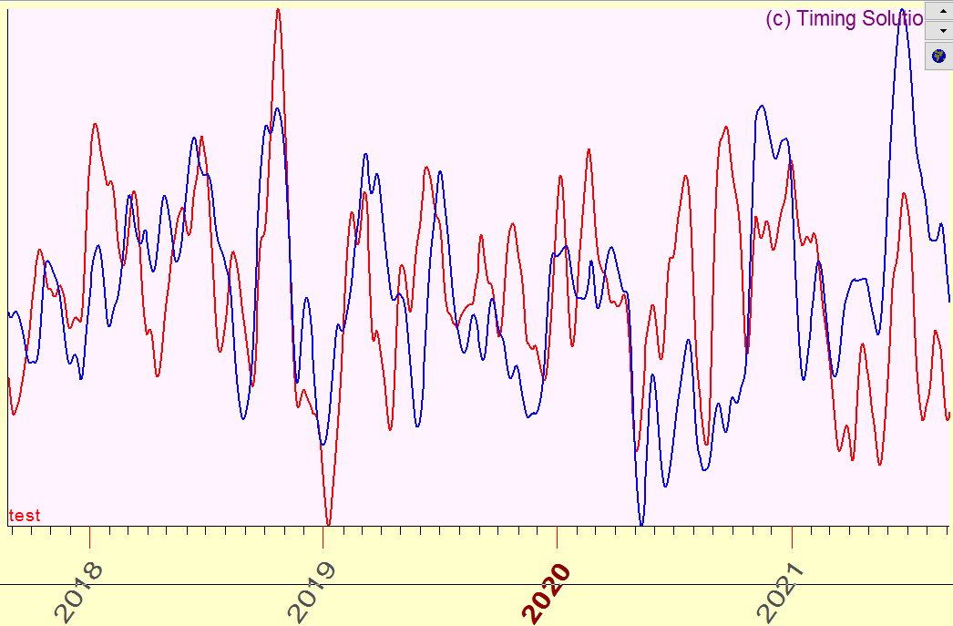 Example #2: with Timing Solution you can easily build a projection line based on any astronomical cycle. As an example, look at the projection line based on Venus heliocentric cycle; here it is: