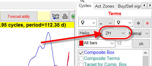 As you see, the average period of this cycle is 224.7 days. And we can also apply different harmonics, like 2H harmonic to analyze half of this cycle: