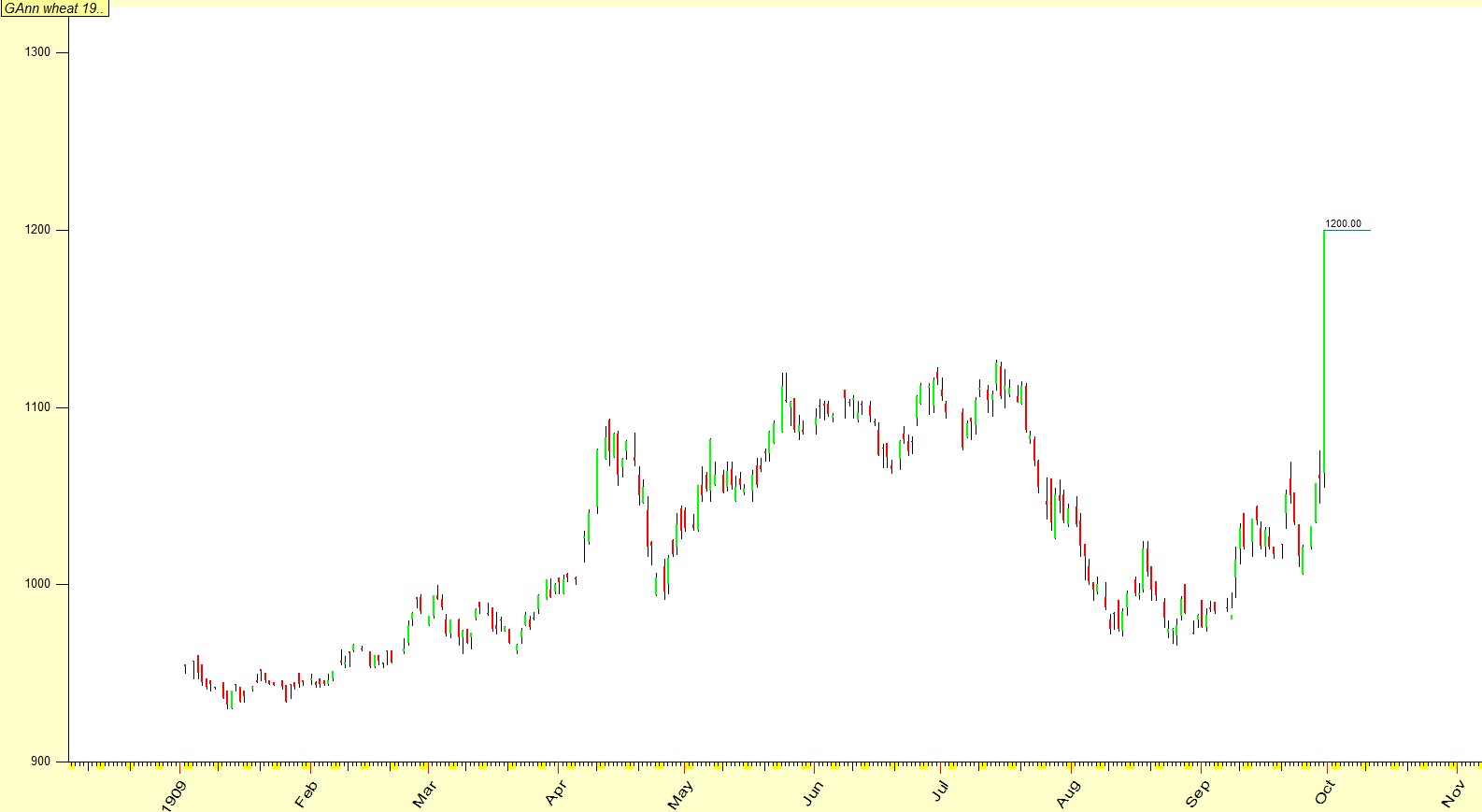 At April 13th 1909, wheat reached a price of 1094.