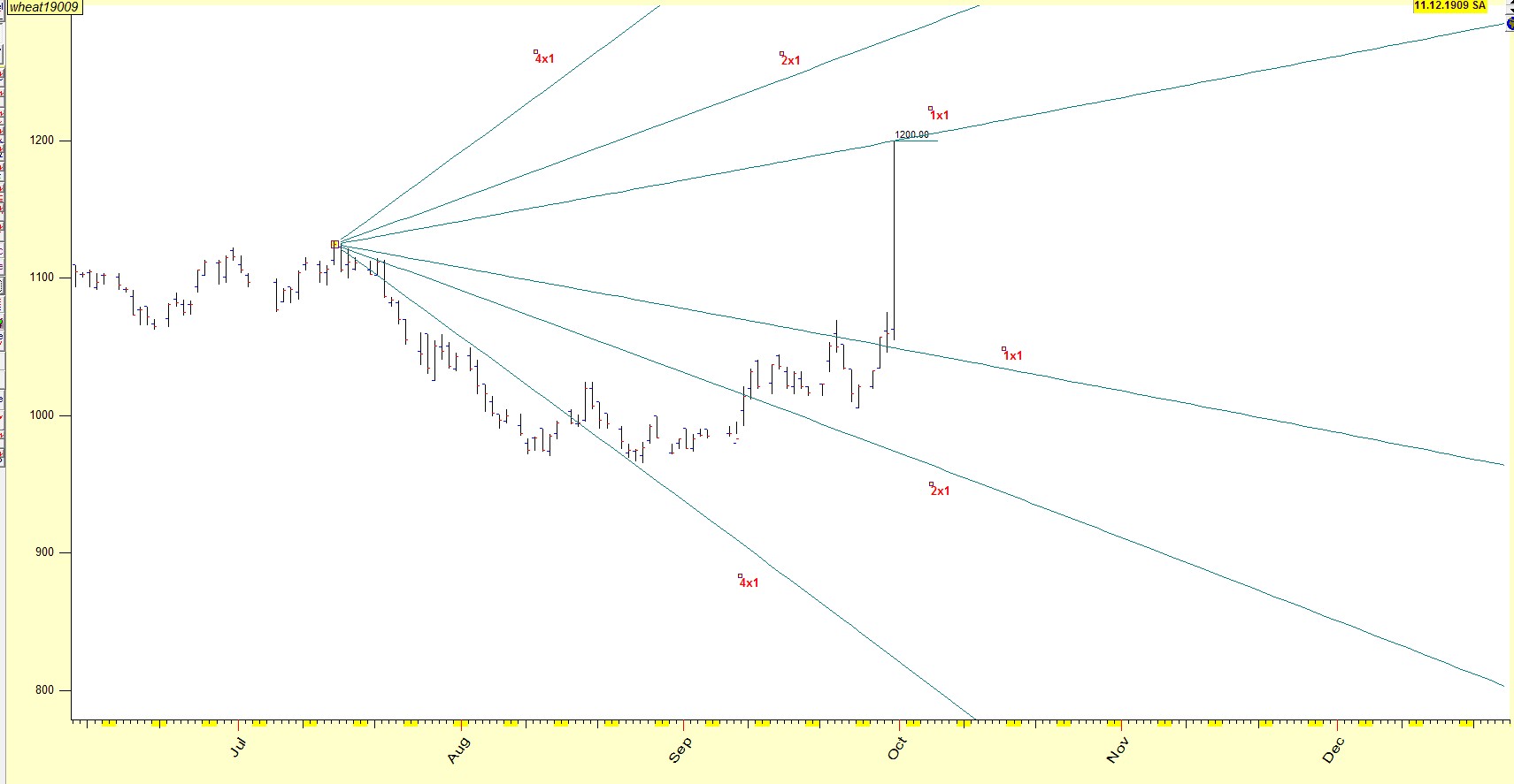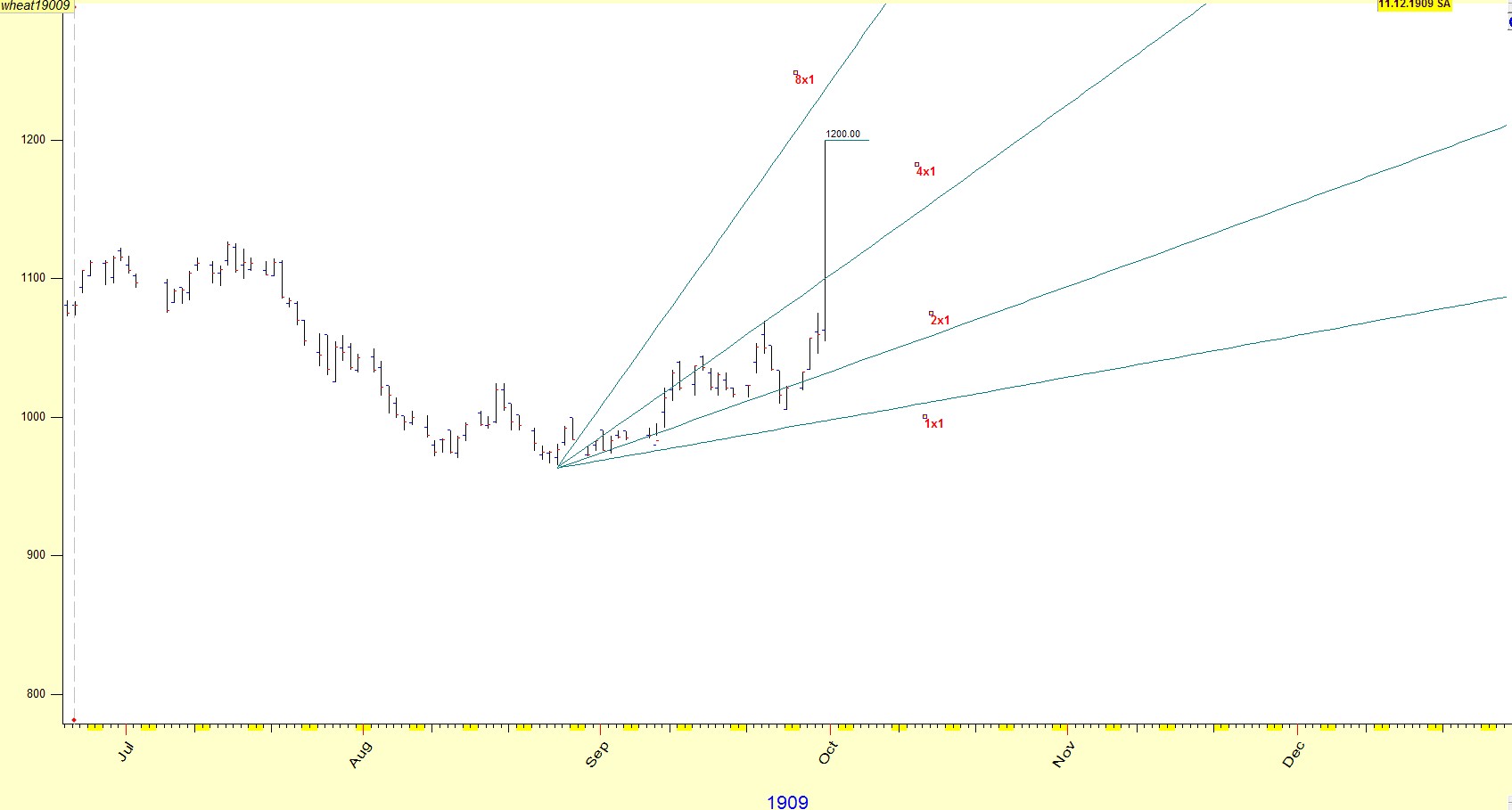 He said, that if by the end of the trading day of September 29th 1909,Wheat September would not reach 1.20 $ ,then it would prove that there was something wrong with his method.