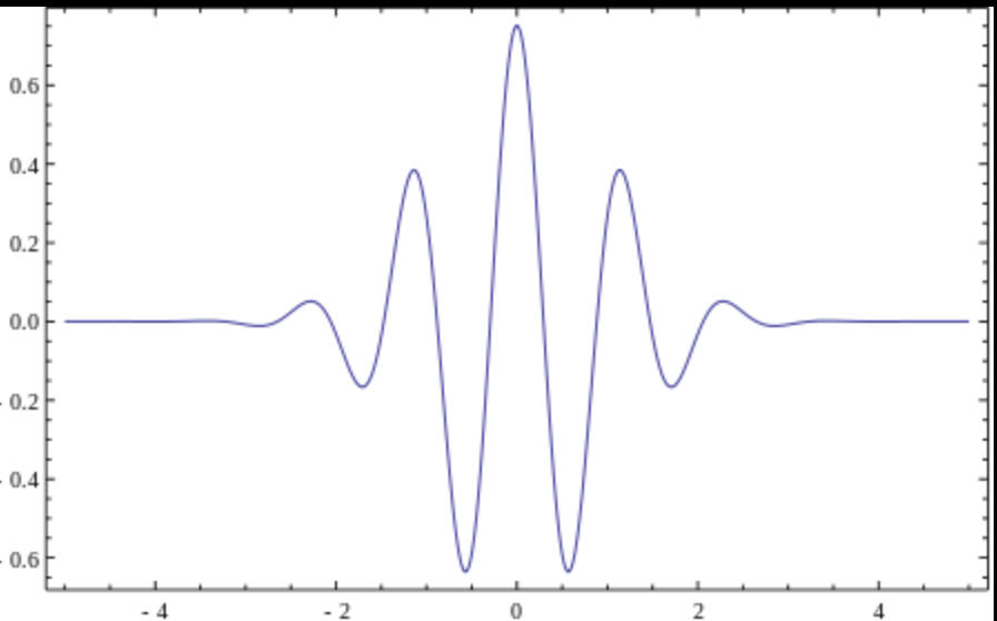 What have we done here? This standard math procedure reveals a presence of one year wave in our financial data. Wavelet is a wave visible for a restricted time. This is how it looks (Morlet wavelet):