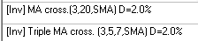 slow=20 bars, and #2 - the inverted triple moving averages crossover fast=3 bars