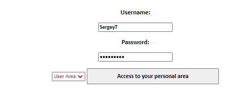 Step #2: type your username and password there and click "Access to your personal area" button: