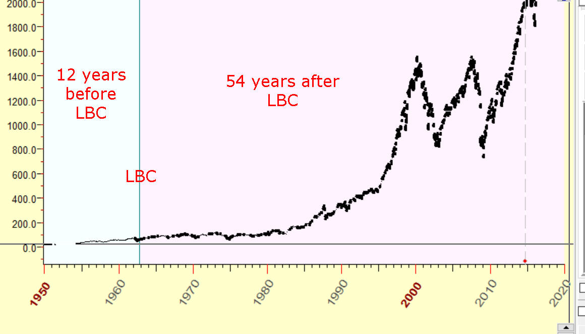 Example: below is a correct setup for our dynamic model with the forecast horizon of one year. The downloaded price history covers a period since 1950, we set LBC to 1962; thus we have 12 years before LBC and 54 years after LBC:
