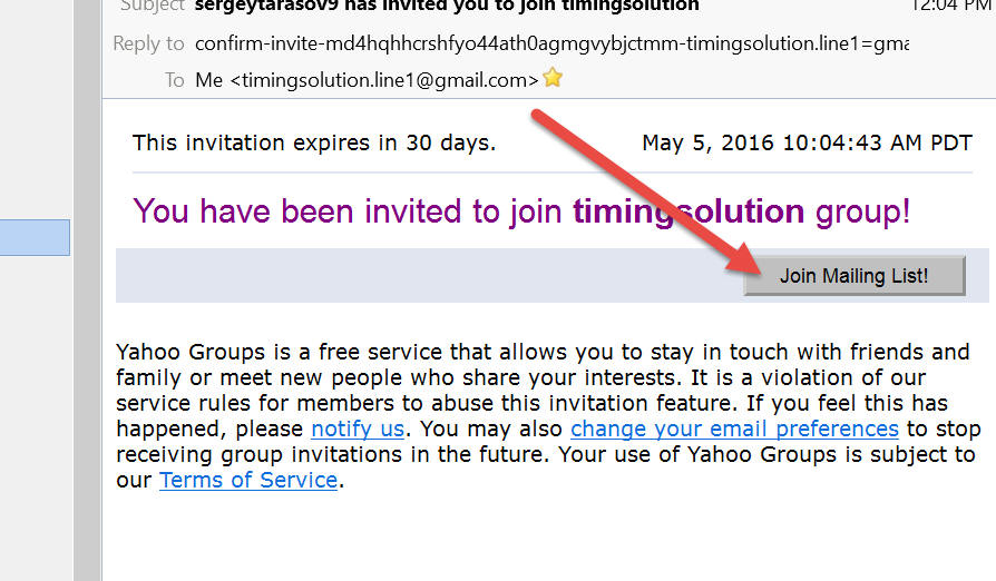 This is the e-mail associated with Timing Solution Yahoo Group, it should not be blocked:
