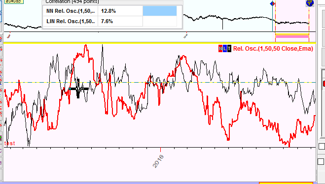 Here I would like to answer some questions asked by a user. He analyzed Neural Net projection line and got a very big correlation between the price and the projection line. Look, here the correlation reaches 71.9%: