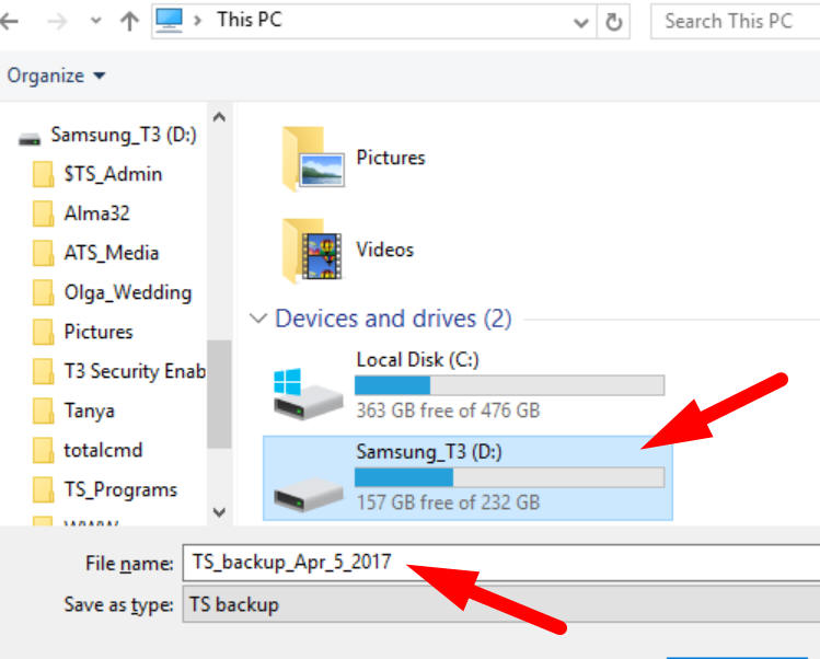 You see, the program stores your backup into D:\TS_backup_Apr_5_2017.ts_bkp file.
