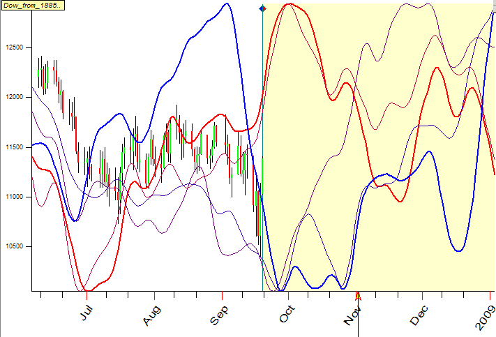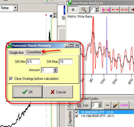You can use committee technique in Spectrum module as well. When you calculate spectrum to find dominant cycles and drag these cycles to the Main Screen to get a projection line (this technology is described here http://www.timingsolution.com/TS/Study/E/4.htm), you will get this: