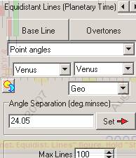 In other words, on July 15, 2008 Venus heliocentric is located in 4deg13min of Libra. We look for the moments when Venus heliocentric passes 4deg13min of Libra +24 degrees = 28deg13min Libra, 28deg13min Libra +24 degrees =� 22deg13min Scorpio etc.