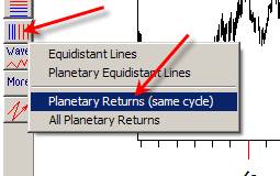 When you choose �Planetary Return (same cycle)� item, you get this dialog box: