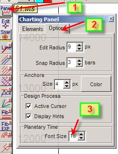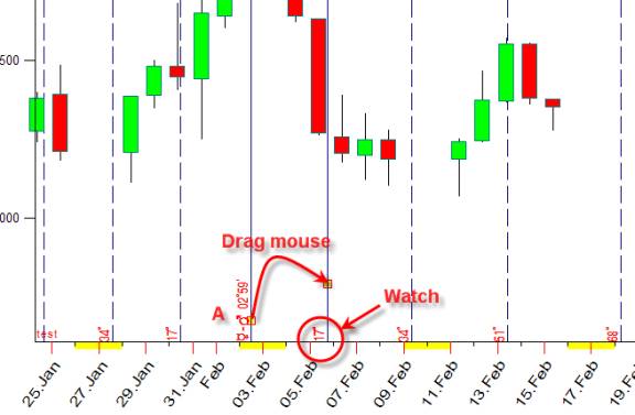 Here you may either watch for specific increment value (like 17 degrees) or you may touch some specific point on the chart (like the next top or bottom) and see the corresponding increment degree. When you release the mouse, you will see vertical lines representing the points you are looking for.