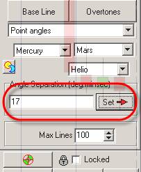 2) Ok, we� have decided to go with 3 degrees as a starting point. We see that the angle between Mercury and Mars Helio reaches 3 degrees (0..360 angle scale) in the beginning of February, 2008. Now we will perform �17 degrees stepping�.