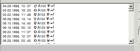 This is how the list of 155 degrees aspects looks like:
