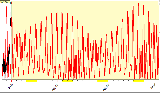 If we speak about intraday data, we deal with much faster cycles. The most important among them is Daily (Diurnal) cycle. Astronomically this cycle corresponds to the Sun's position regarding the horizon; astrologically it means the position of the transit Sun in transit houses; technically it corresponds to the Sun's position in In Mundo Zodiac. Thus 24-hour daily cycle is similar to one year Annual cycle; we simply use different Zodiacs there: for Daily Cycle it is In Mundo Zodiac while for Annual Cycle it is Tropical Zodiac. There is another fast cycle I recommend to pay attention to: this is the Moon's position regarding the horizon (= the Moon in houses = the Moon in In Mundo Zodiac). Due to the fast Moon movement, the period of this cycle is about 25 hours. The Sun and the Moon daily cycles form a tidal force that affects the Earth's inhabitants.