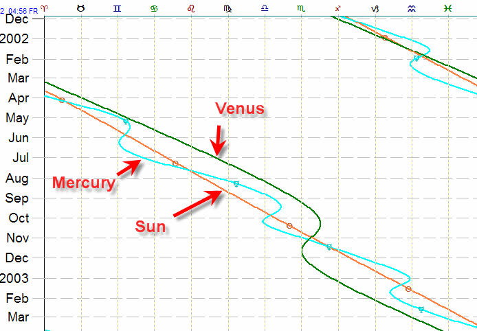 You can see that trajectories of Mercury and Venus are close to Sun's trajectory.