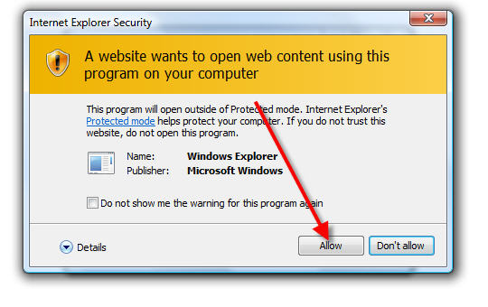 Step #6 It is possible that the security system will ask your permission again; click "Allow'.