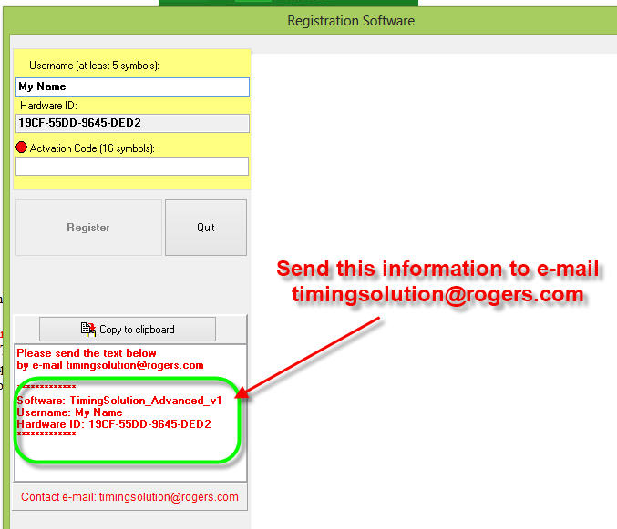 In this window, you need to enter your user name of your choice. Your Hardware ID (the unique number belonging to your machine) will be displayed automatically;