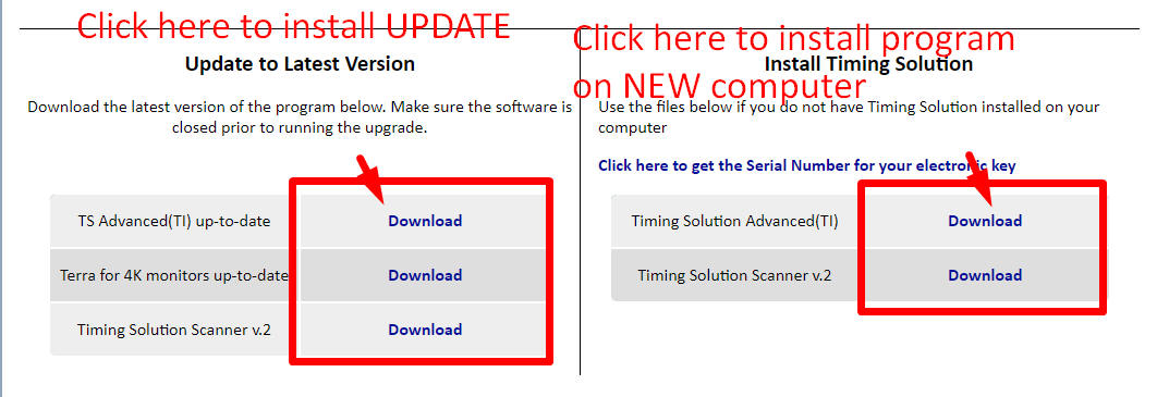 1) Check that Timing Solution software is closed while you are downloading the upgrade.