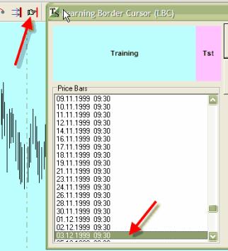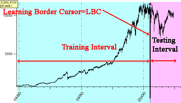 Blue interval is Training Interval, Red interval is Testing Interval. The border between them is Learning Border Cursor - LBC.