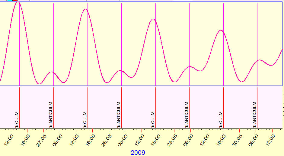 Also pay attention that the maximum of tidal force's effect correspond to the Moon culminations and anti culminations: