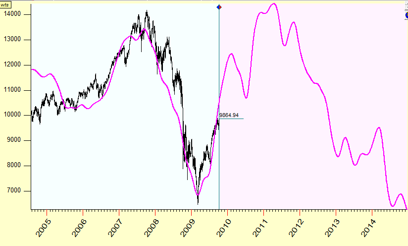 Why do we conduct this experiment? The answer is very simple: now, in the year 2009, we know what happened to Dow after the year 1989, so we can see how that forecast really worked. Here it is: