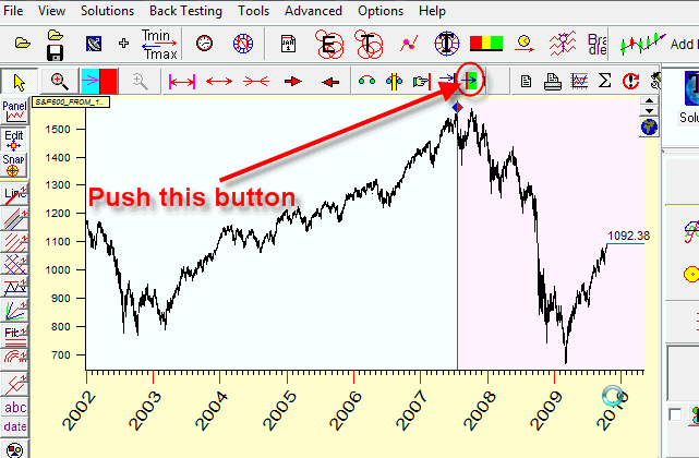 Thus you can push this button and conduct your analysis, then release this button and see how your models fit the real price movement.