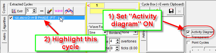 Now, when the cycle is revealed, we need to know how this cycle works in time. Simply "drag and drop" this cycle in the Main screen (here is the detailed explanation how to do that: http://www.timingsolution.com/TS/Study/E/4.htm):