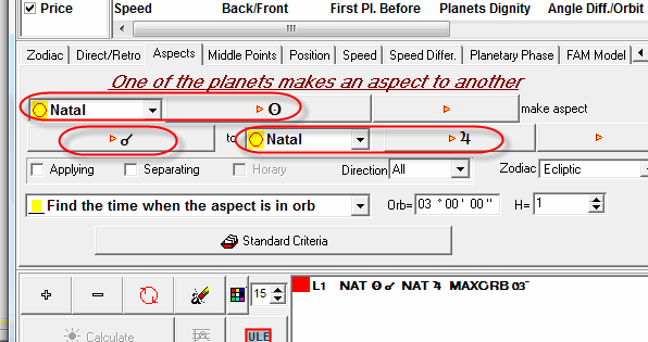 In this case the program will analyze NOT ALL Natal planets, but the planets that fit our criteria i.e. only Natal planets that rule the second house of each Natal Chart.