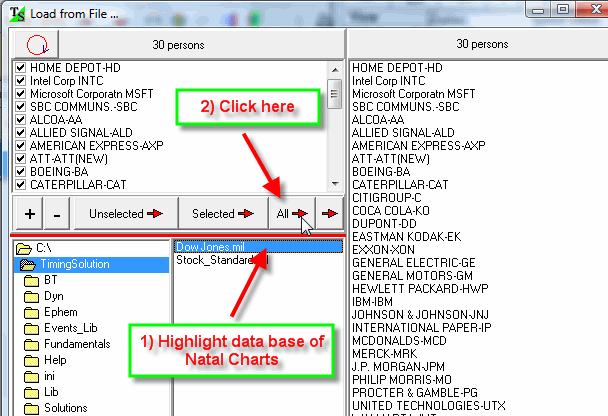 To do that, we need to have two things: the file with natal data for these 30 blue chips and the model that includes all "good" aspects of the day.