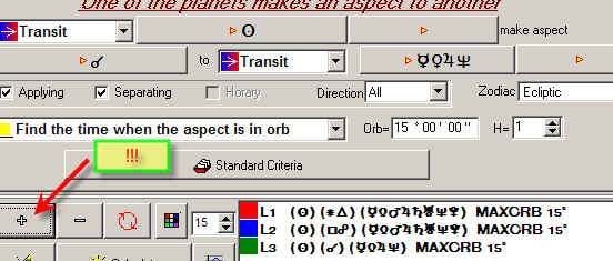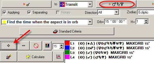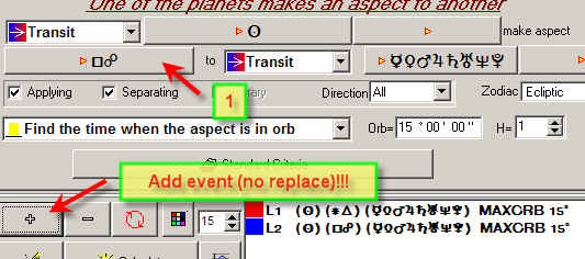 So we need to create two more events: L3 "the Sun conjuncts Mercury, Venus, Jupiter, Neptune" (do not forget to click "+" button!):